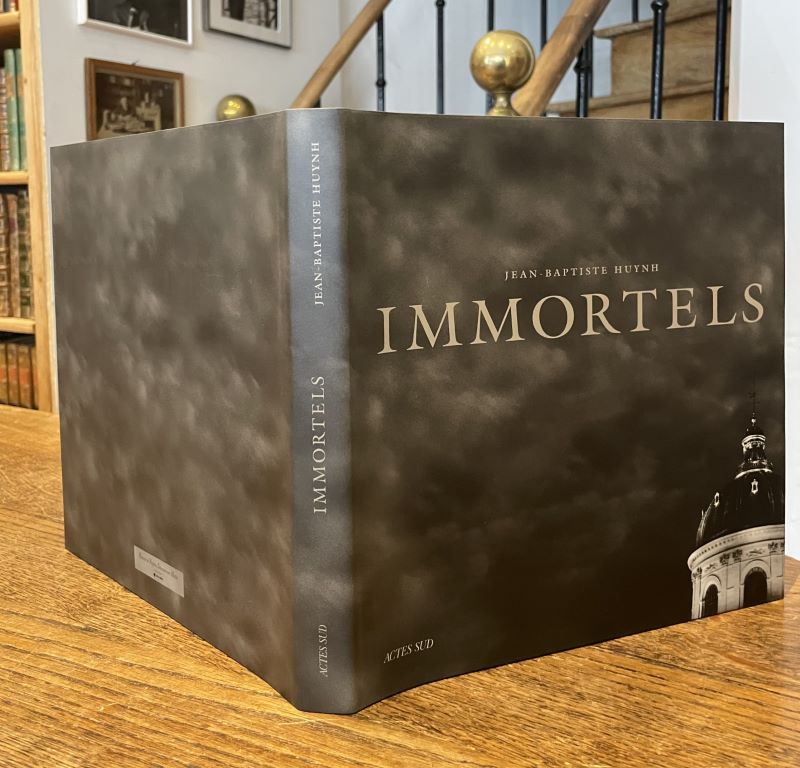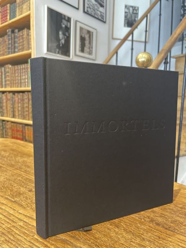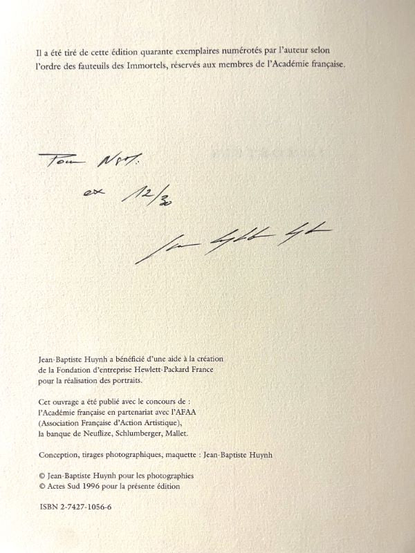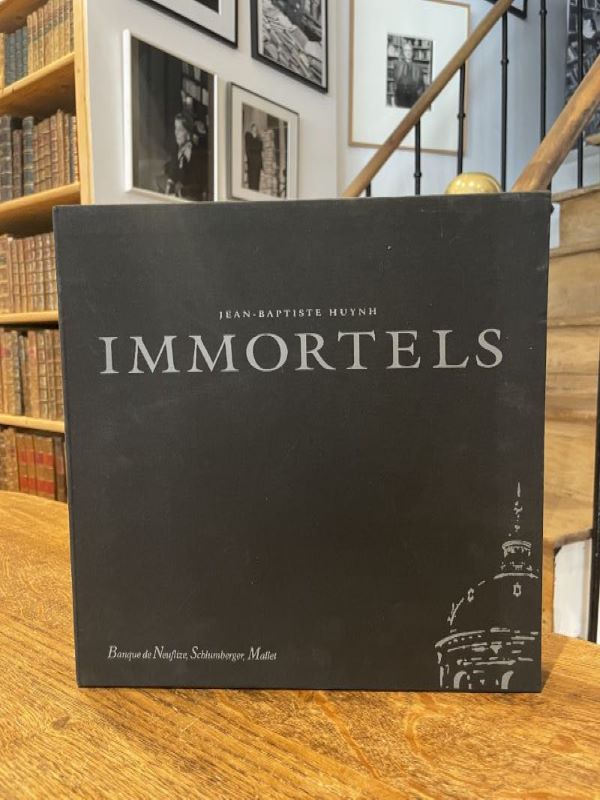 in-4, toile éditeur noire, jaquette illustrée, coffret toilé, non paginé. Premier tirage de ce bel album de 40 portraits photographiques des membres de l'Académie française, avec la réponse de chacun (en fac-similé sur papier calque) à la question : « Si vous nétiez pas vous-même, qui auriez-vous aimé être ? » Un des 40 exemplaires numérotés et signés par le photographe, sous coffret. En bonne condition.