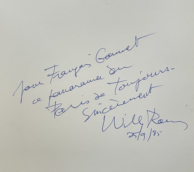 in-4, cartonnage toilé noir de l'éditeur, jaquette illustrée, 191 pp. Album de 170 photographies en noir et blanc sur Paris conçu par le photographe non pas "comme un guide pour visiter Paris" mais plutôt comme "un voyage sentimental tout au long d'un demi-siècle d'activité photographique". Avec un envoi autographe signé du photographe. En très bonne condition.