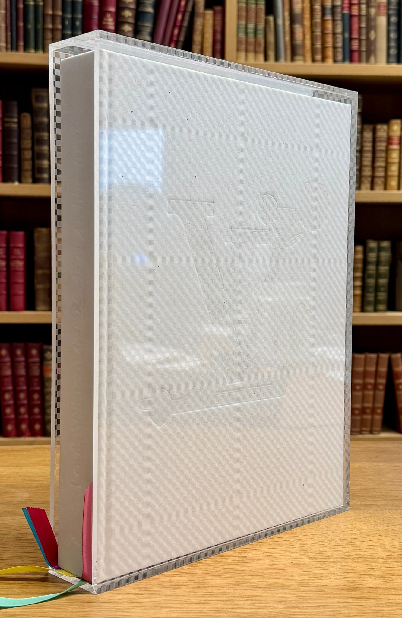 in-4, cartonnage de tissu blanc avec le logo à froid Louis Vuitton dessiné par Takashi Murakami, sous étui plexiglas sérigraphié de motifs à damier, 404 pp., nombreuses reproductions et photos en couleurs. Edition de luxe à tirage limité (non justifié) conçue par Murakami. Volume conforme à l'édition française de la Martinière mais estampillée par l'éditeur Rizzoli à New York. Très bon état.