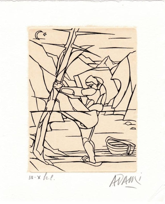 in-8 carré, broché, couverture à rabats, non coupé, 189 pp. Edition originale illustré de 22 reproductions en noir et blanc in texte. Un des 100 exemplaires de luxe (non justifié), les seuls à comporter une gravure originale de Valerio Adami, numérotée III/X h.c. et signée par l'artiste. En bonne condition.