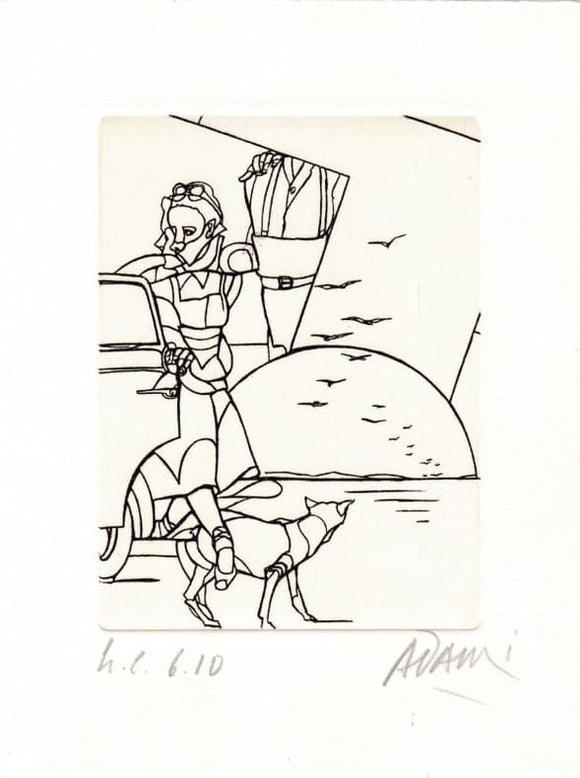 in-8 carré, broché, couverture à rabats, non coupé, 80 pp. Édition originale. Un des 100 exemplaires de luxe numérotés, les seuls comportant une gravure originale de Valerio Adami numérotée et signée par l'artiste. En parfait état.