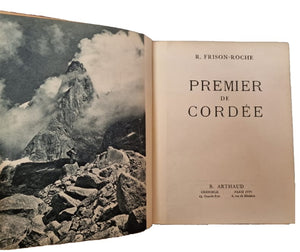 in-8, demi-chevrette fauve à coins, dos à quatre doubles nerfs sertis de filets à froid se prolongeant sur les plats, tête dorée, non rogné, couvertures conservées, 314 pp. Première édition illustrée, comprenant 16 photographies hors-texte en héliogravure. Plaisante reliure pour cet indémodable classique que l'on place encore entre les mains des alpinistes en herbe qui veulent accomplir des courses en haute montagne
