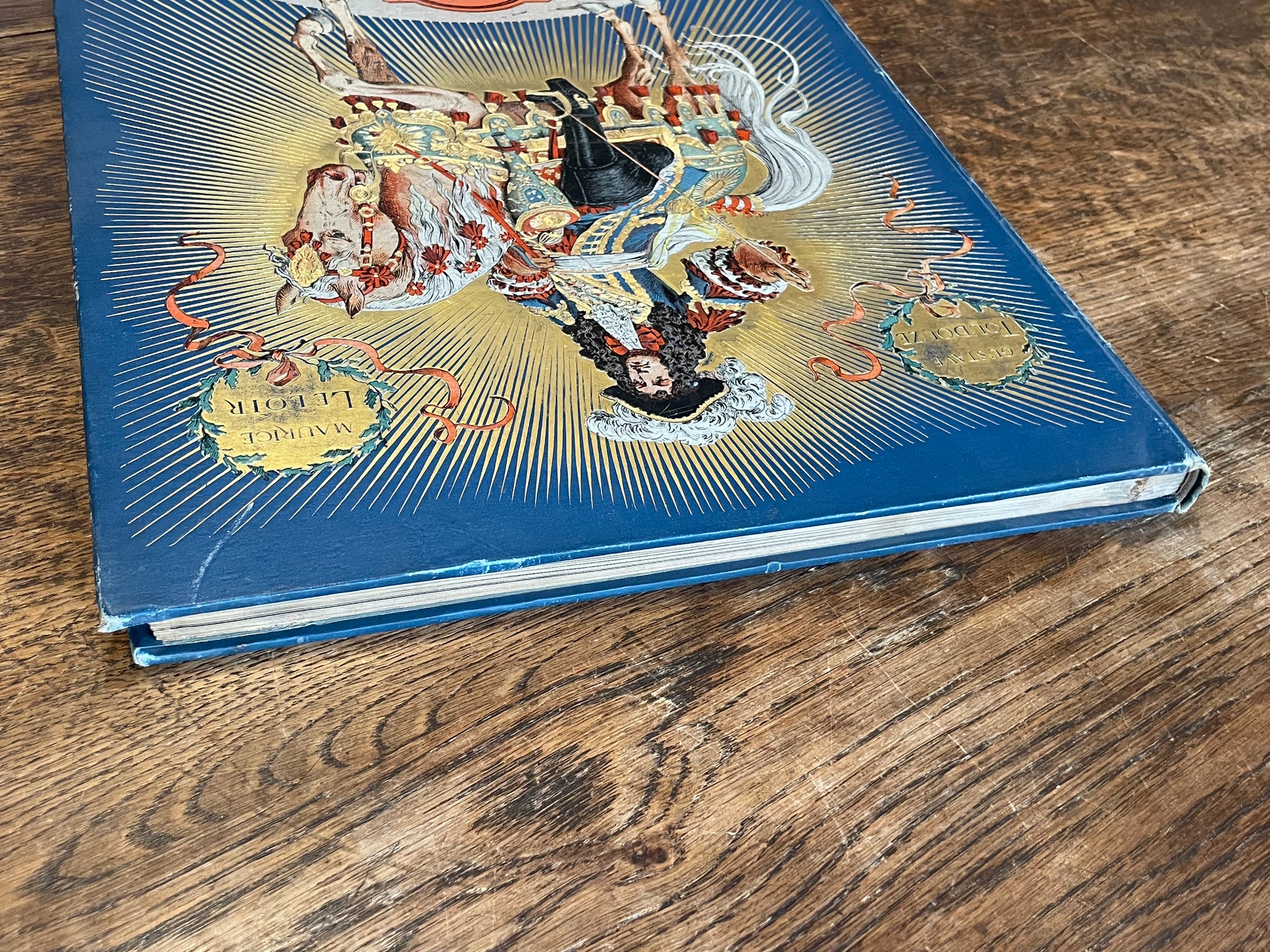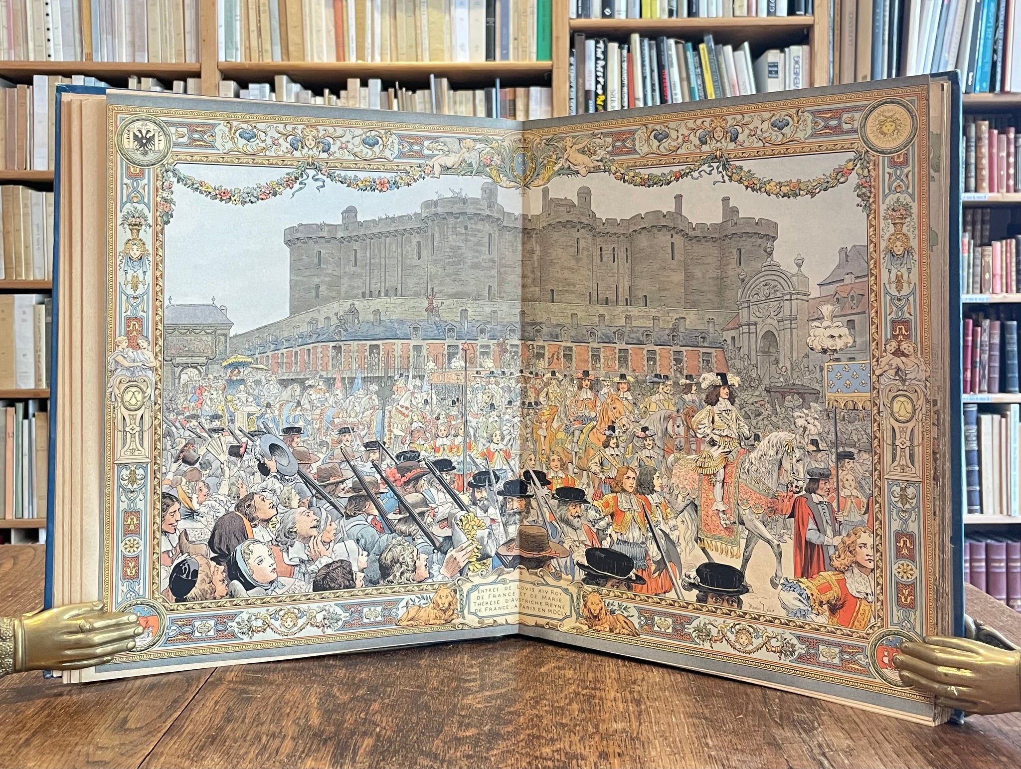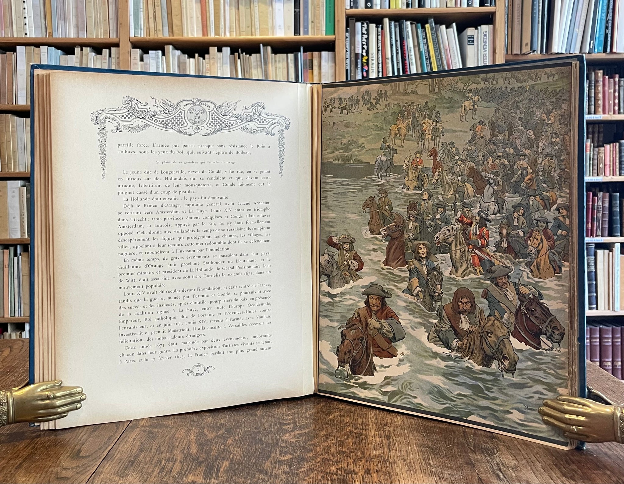 in-folio, percaline bleu avec une grande composition en couleurs sur le premier plat, tranches dorées (Engel), IV + 92 pp. Premier tirage des 40 compositions en couleurs in texte par Maurice Leloir. Bon exemplaire de cet album entièrement monté sur onglets.